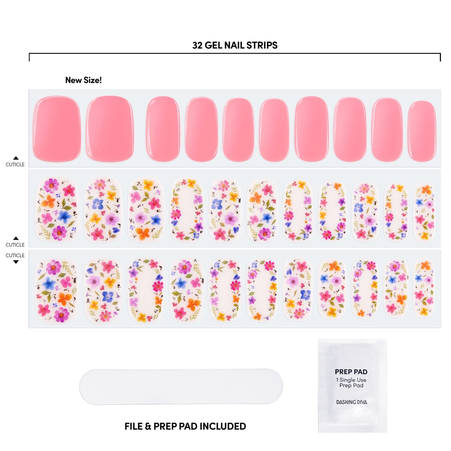 Peachy pink gel nail strips featuring vintage floral details with a double gel formula for an ultra smooth finish.