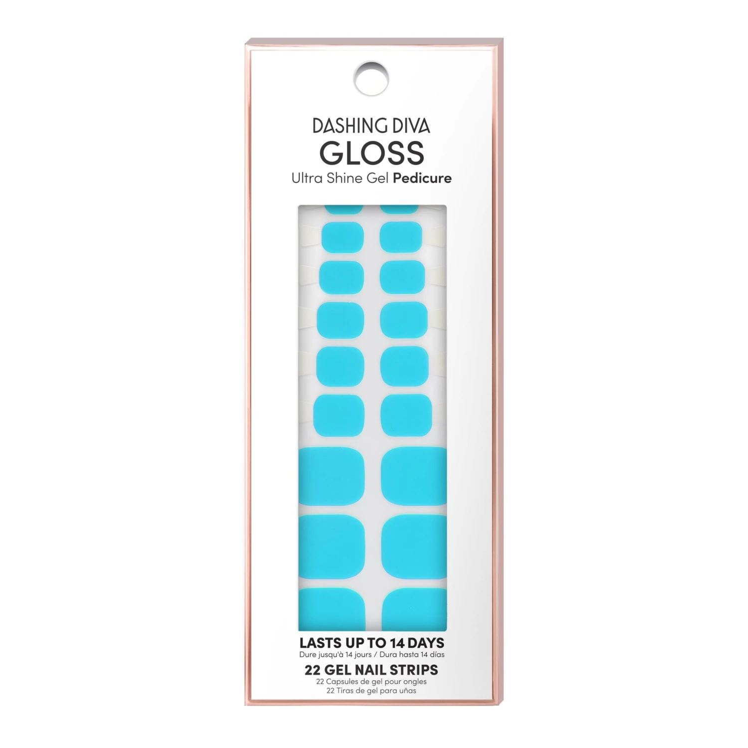 Vibrant aqua blue gel pedicure strips with a glossy, high-shine finish. An ultra-flattering color for all skin tones!