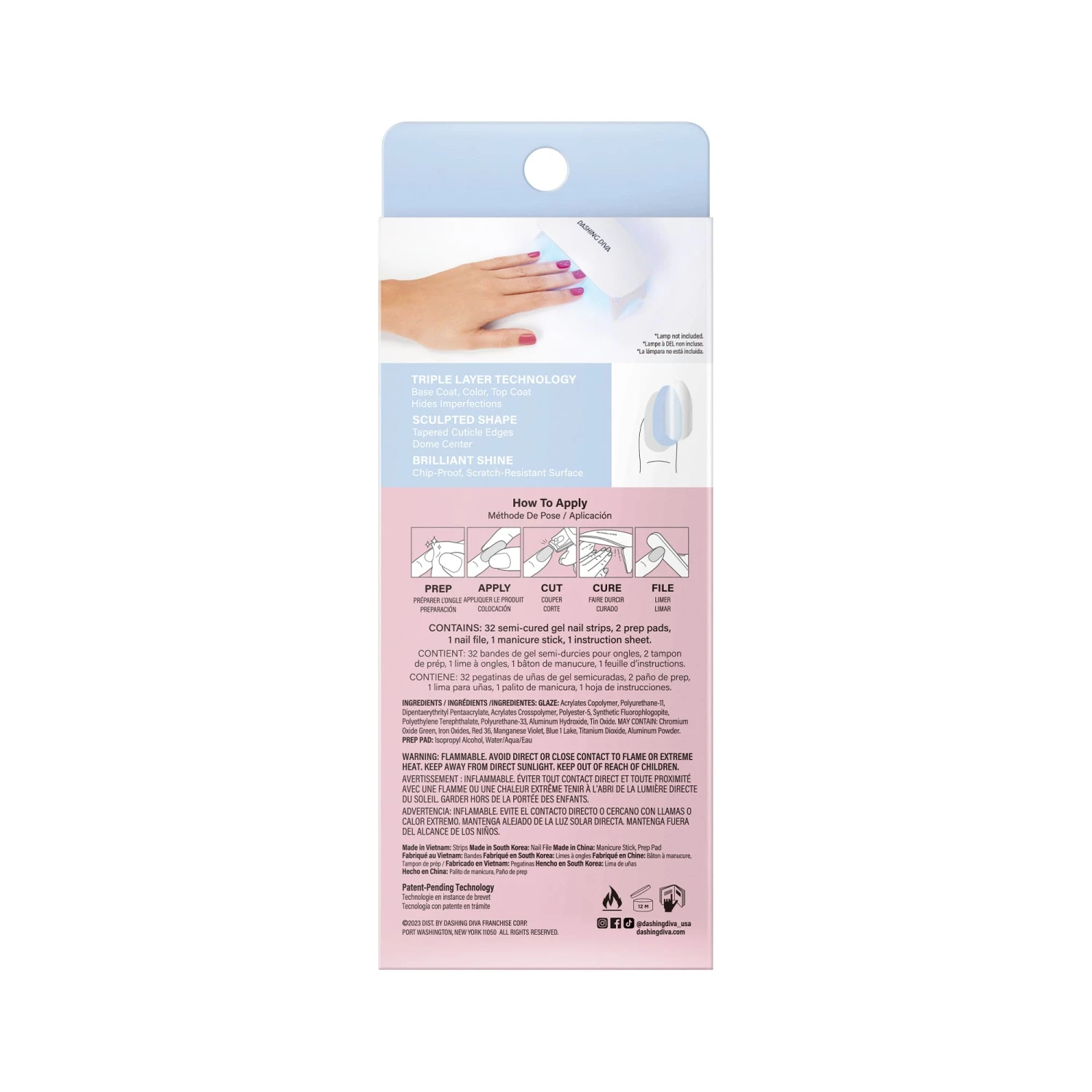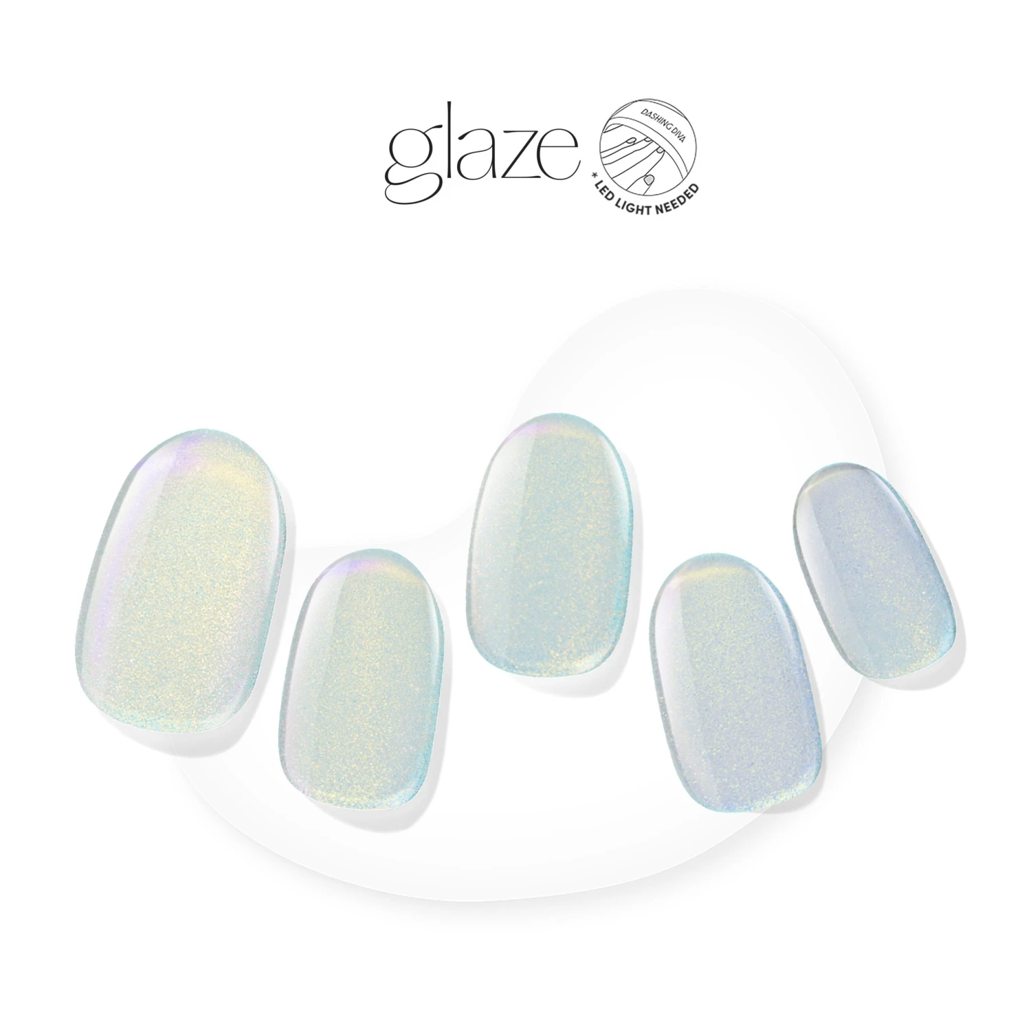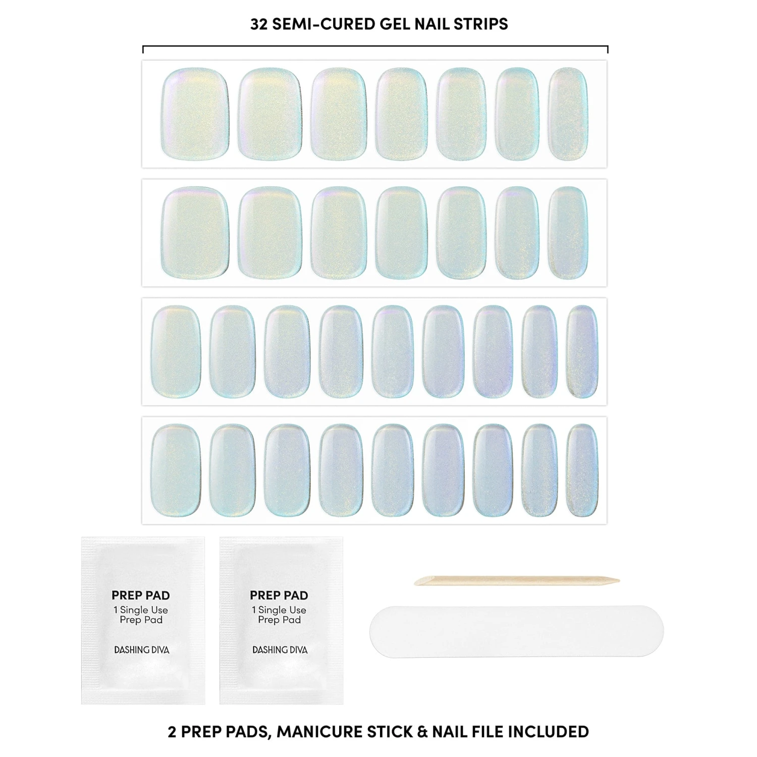 Can you feel it? Semi-cured ice blue gel nail strips featuring velvet shimmer and iridescent chrome effects with mega volume and maximum shine.