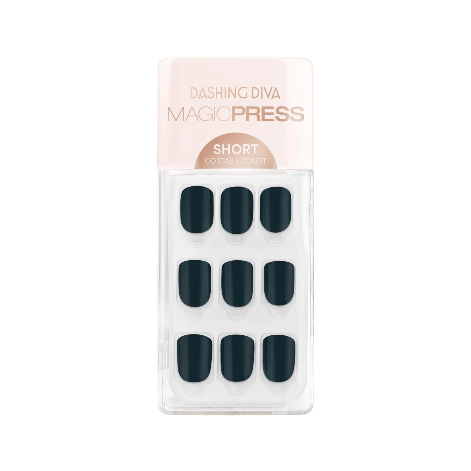 Short length, square shape, glossy finish press-on gel nails. Say Cyan Aura to unkept nails and hello to a groomed, green mani!