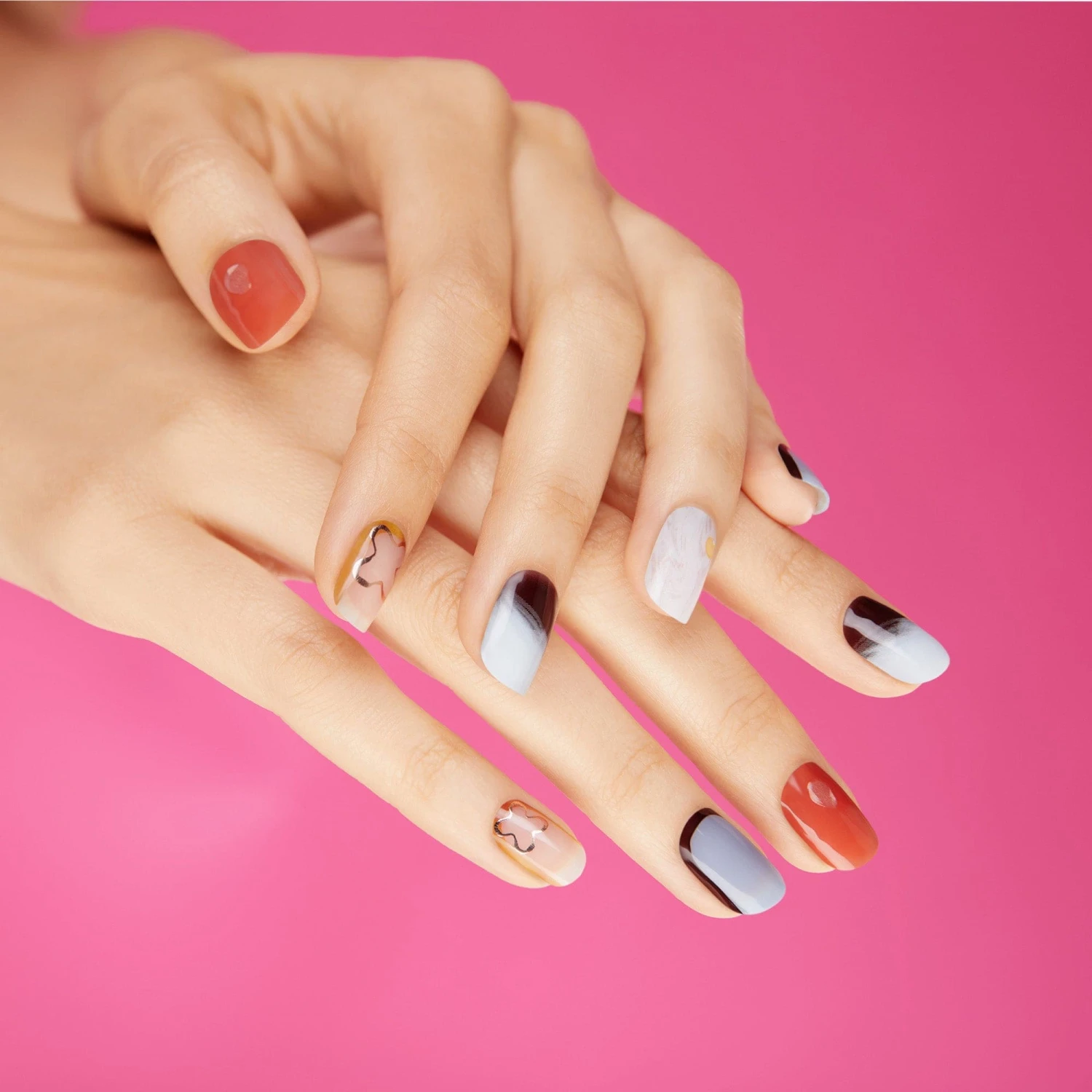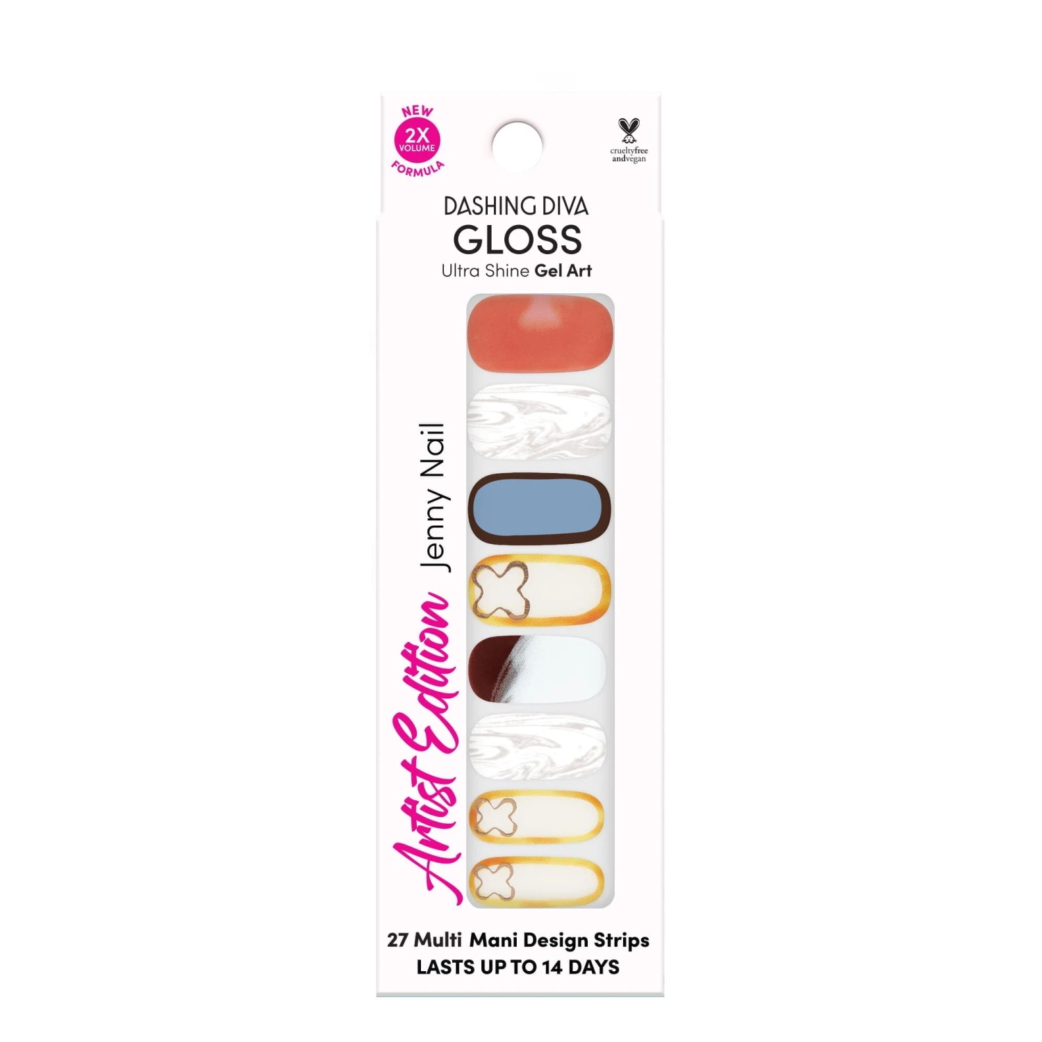 Endless manis are to be made with this endless assortment of nail art. Multi-design gel nail strips featuring black outlining, marbling, and milky white accents with 2x the volume of Gloss and its original, high-shine finish. Features nail art created by nail artist Jenny Nail, in collaboration with Dashing Diva.