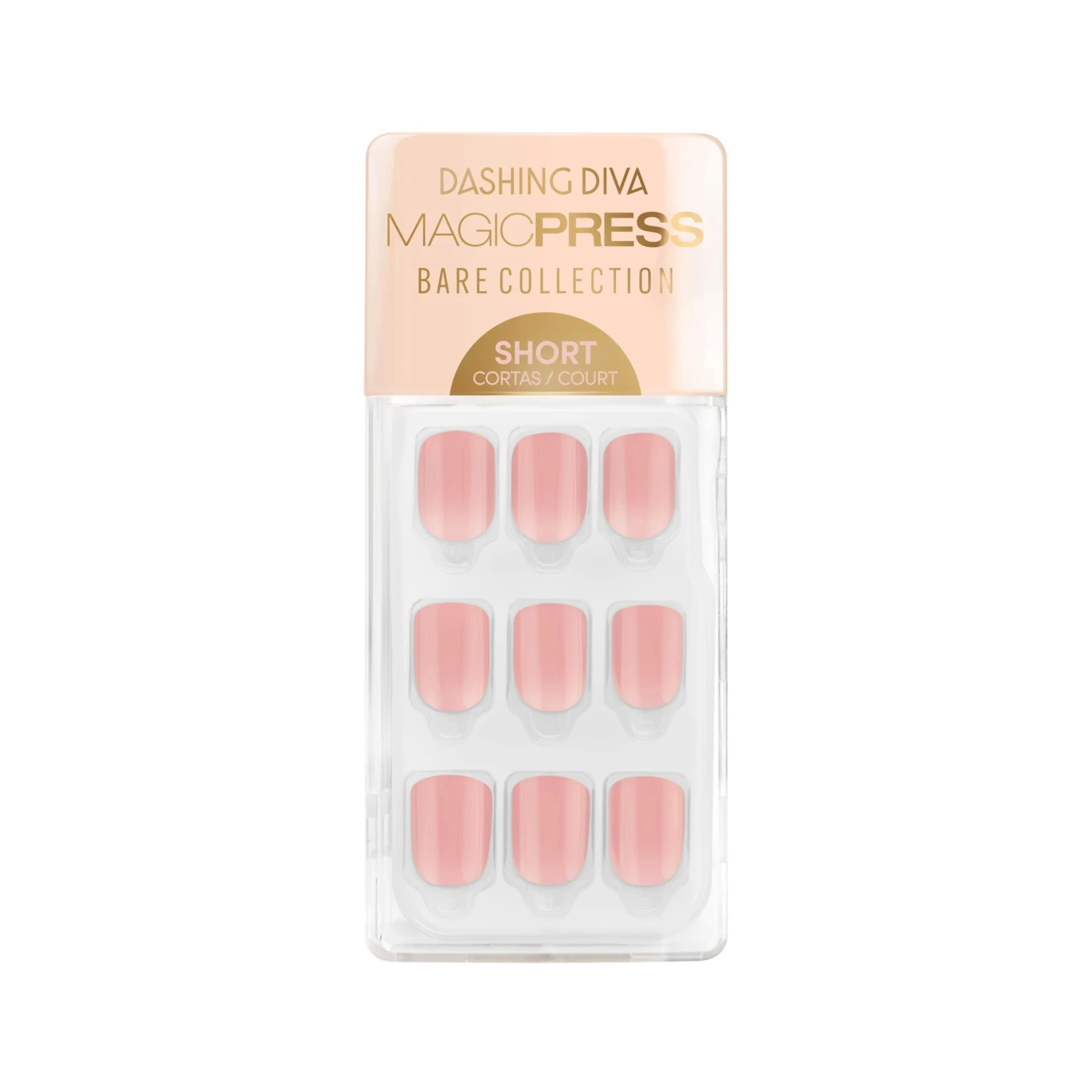 Short length, square shape, glossy finish. Nude rose press-on gel nails featuring a subtle ombré with a clear base.