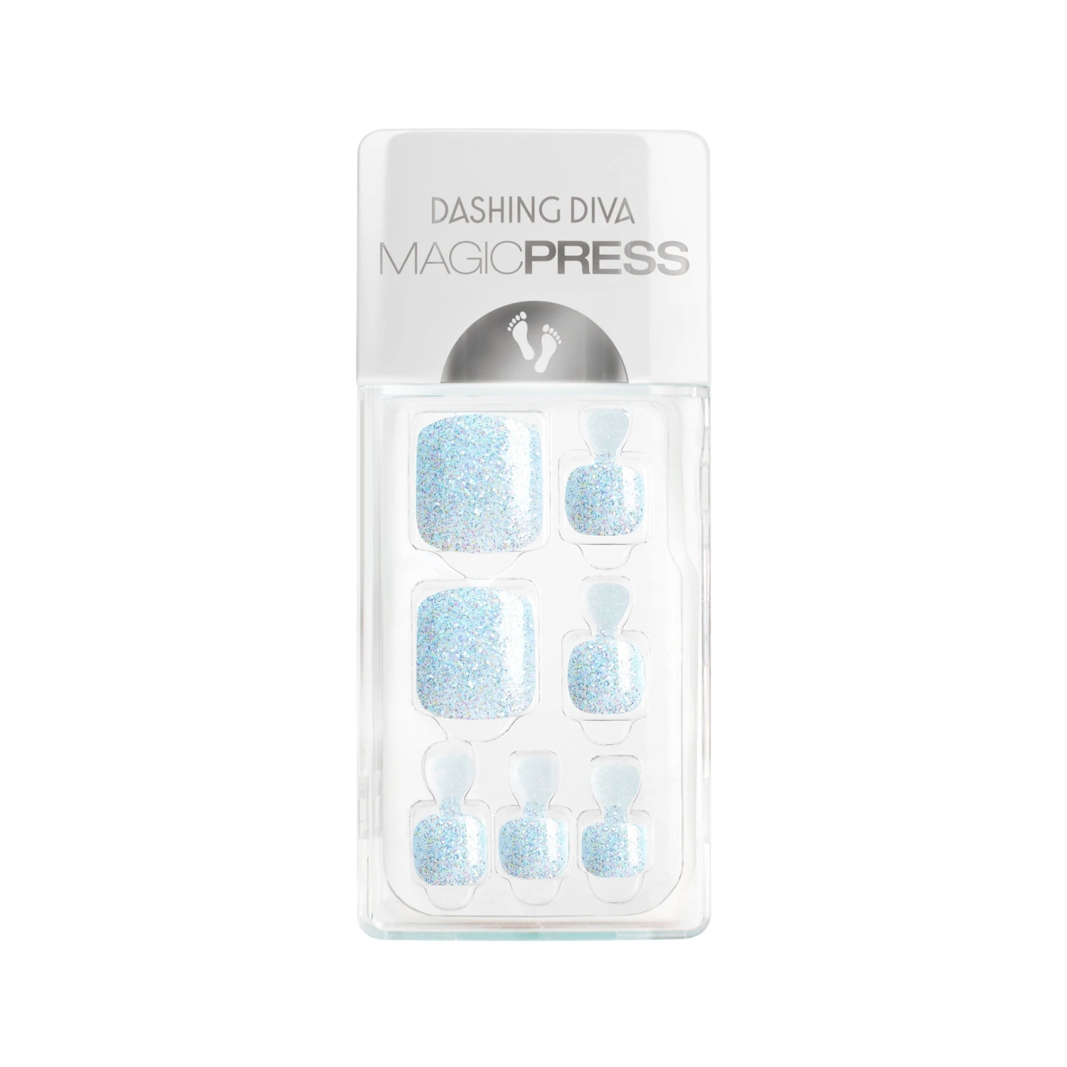 Let your toes glisten like a lake at sunset! A cool blue glitter press-on gel pedicure withโฏeasy application and comfortable wear.