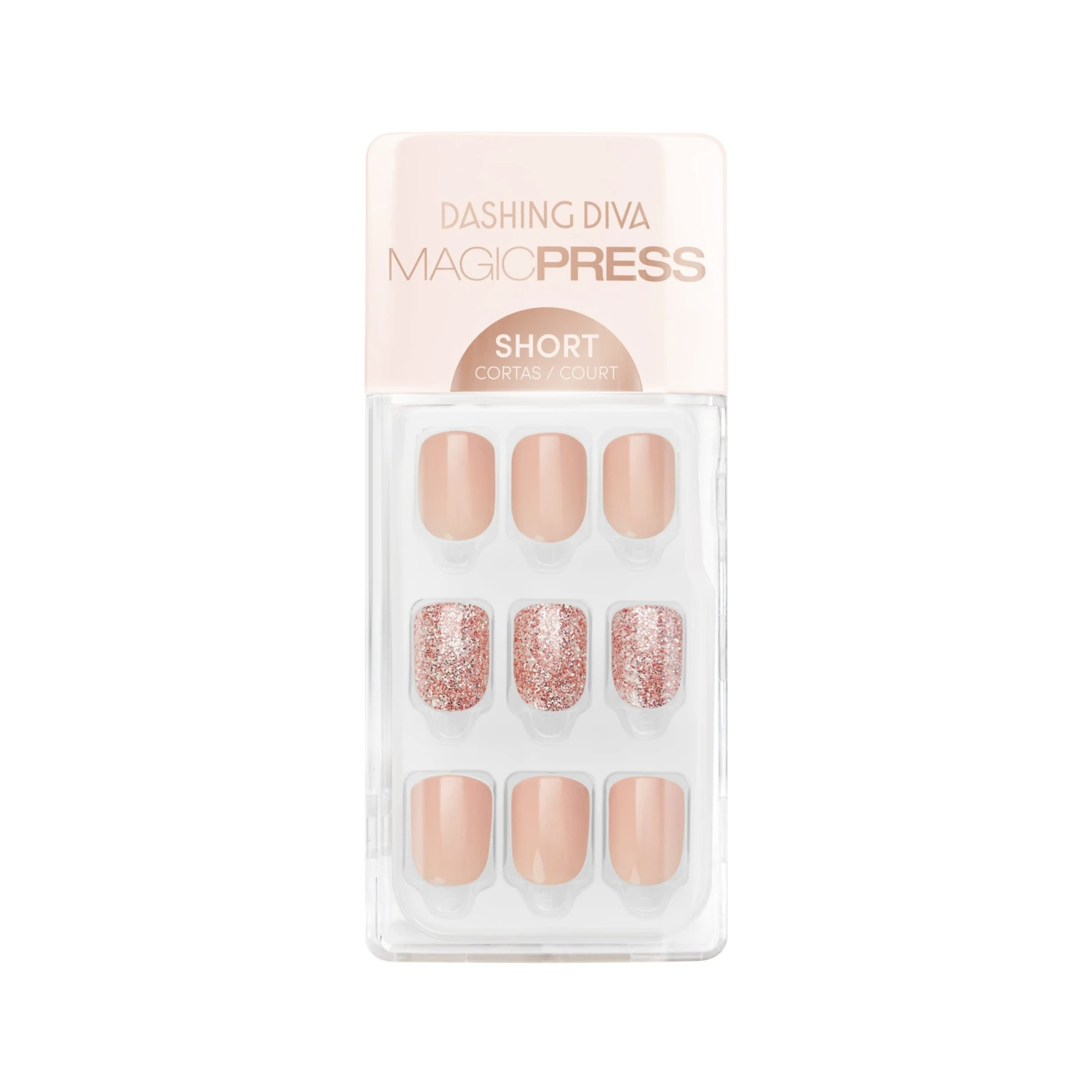 Short length, square shape, glossy finish press-on gel nails. You need some Sparkle in your life, Honey!