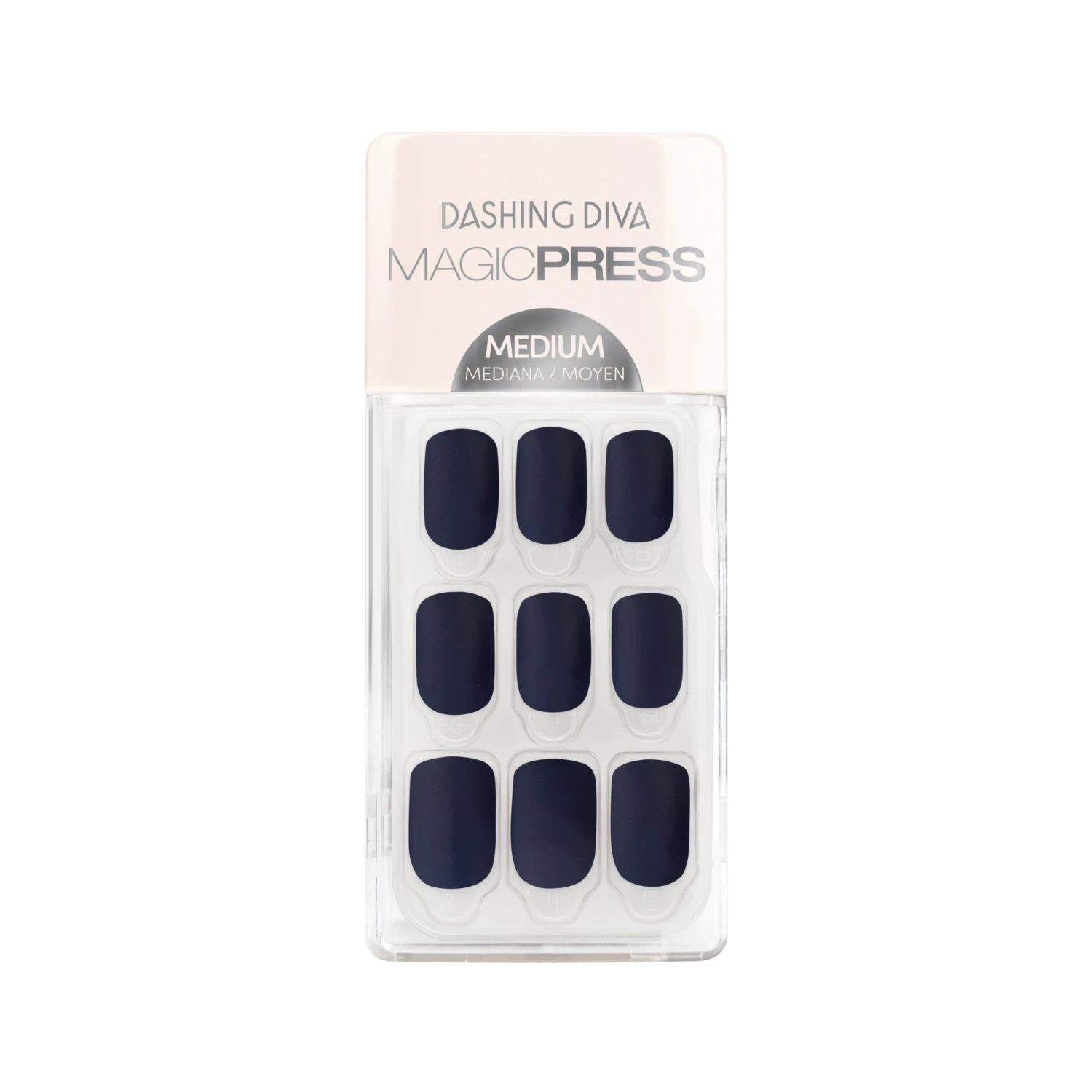 Medium length, square shape, matte finish press-on gel nails. Sail all the seas in this rich navy manicure with bulletproof beauty.