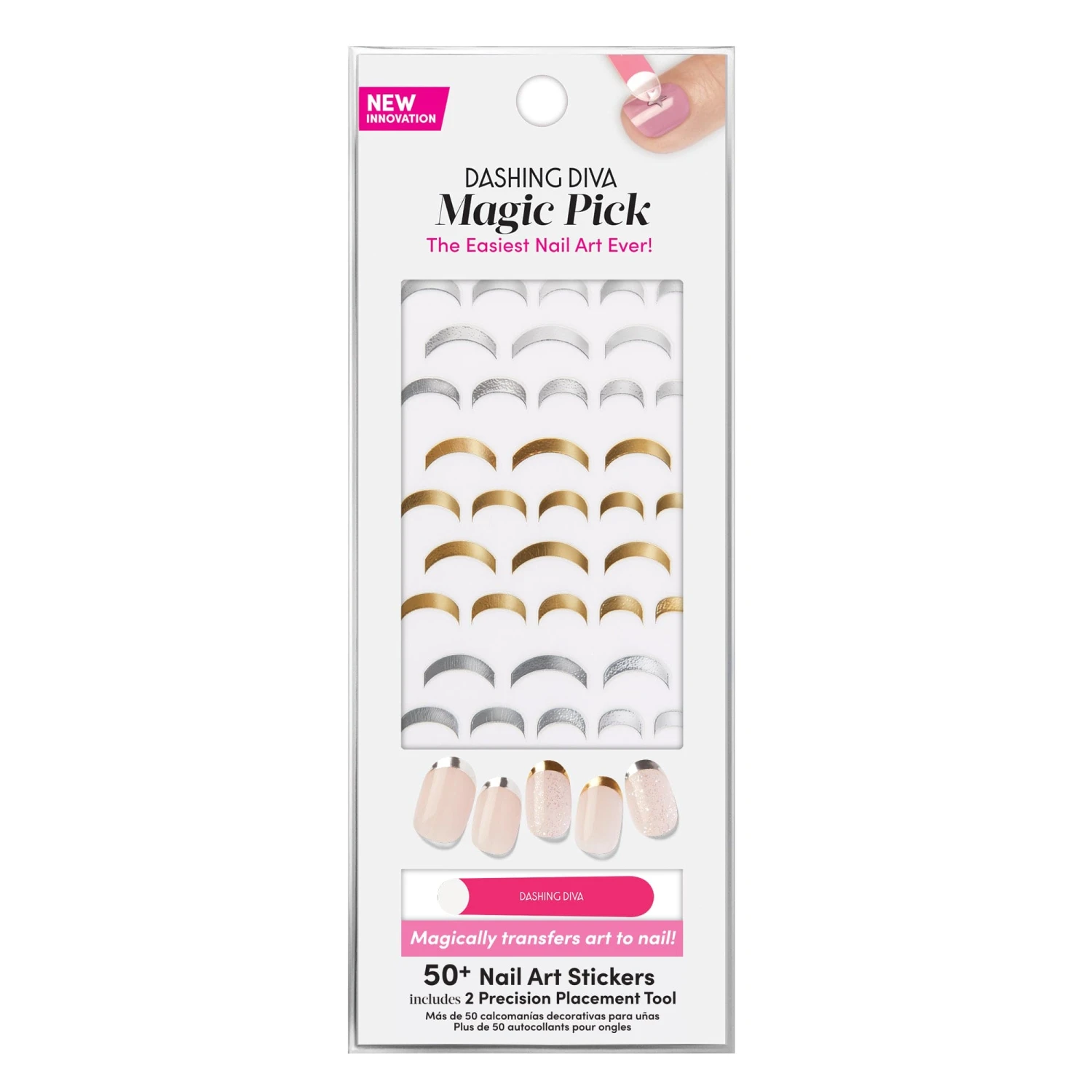 Premium nail art stickers featuring metallic silver & gold foil french tips.