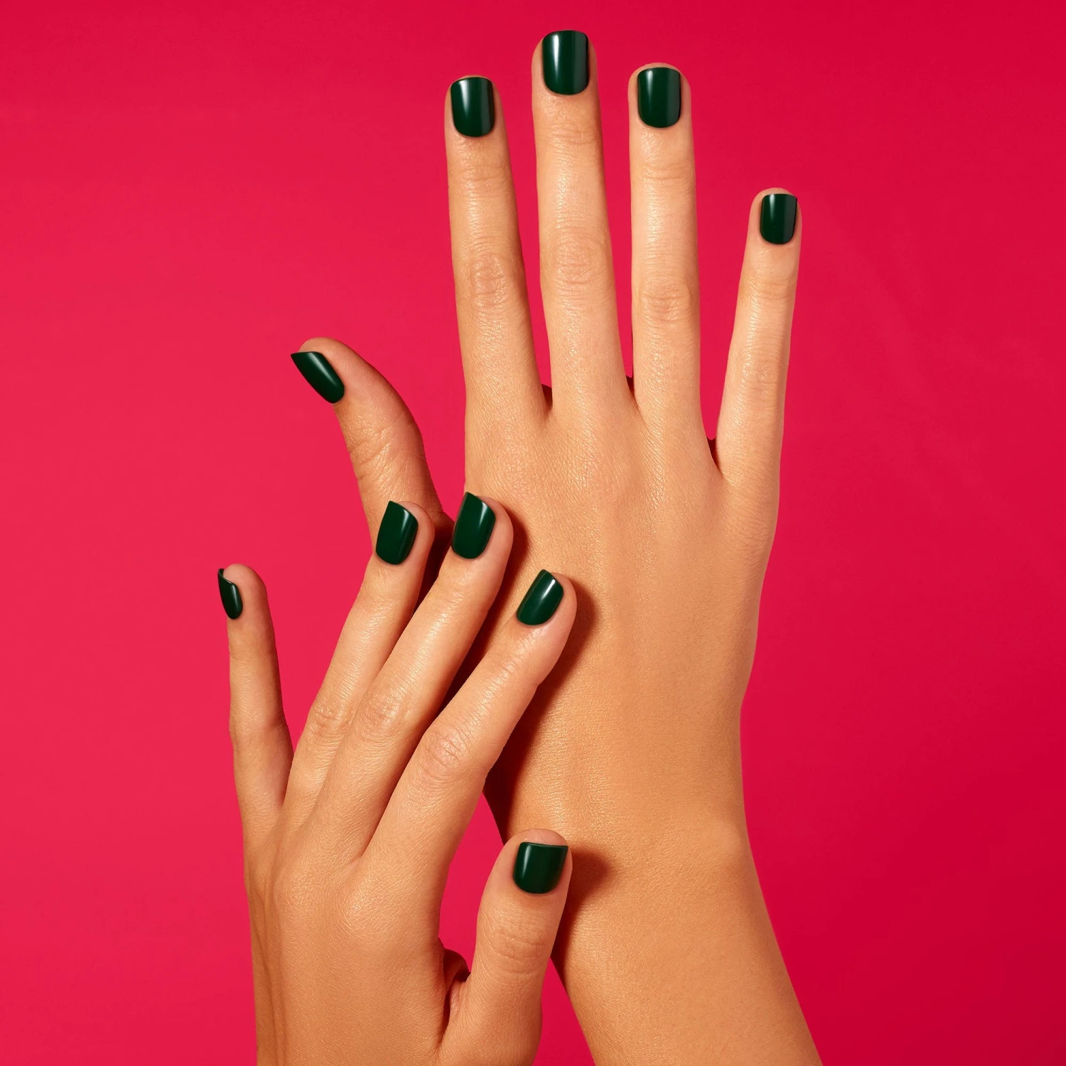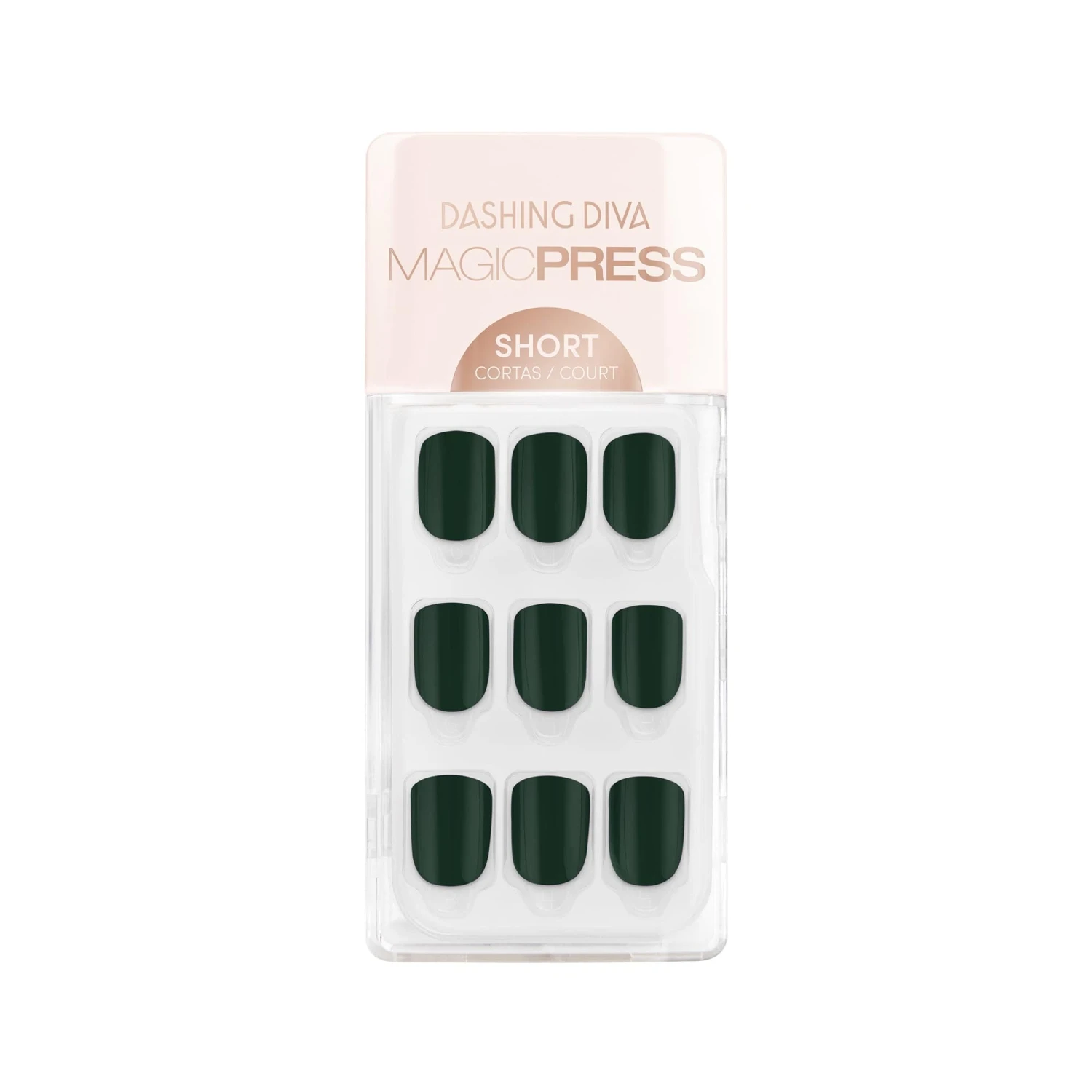 Short length, square shape, glossy finish press-on gel nails. One glance at these deep green nails is all you’ll need to stay palm in any situation.