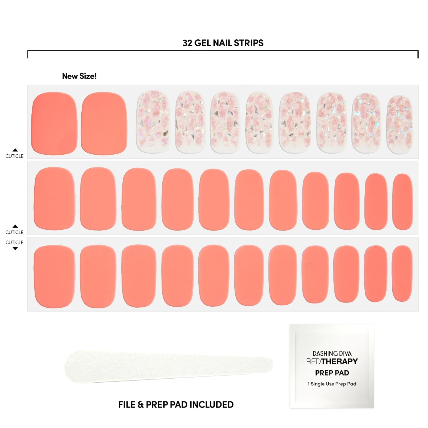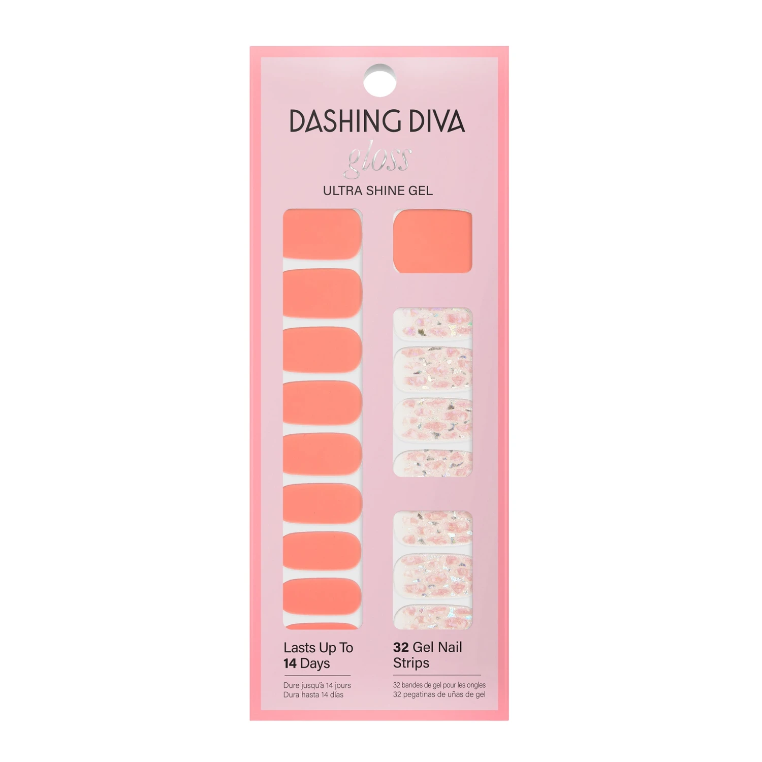 Bright, tangy, tasty. Clear & neon peach gel nail strips featuring iridescent glitter and an underwater seashell design with a glossy, high-shine finish.