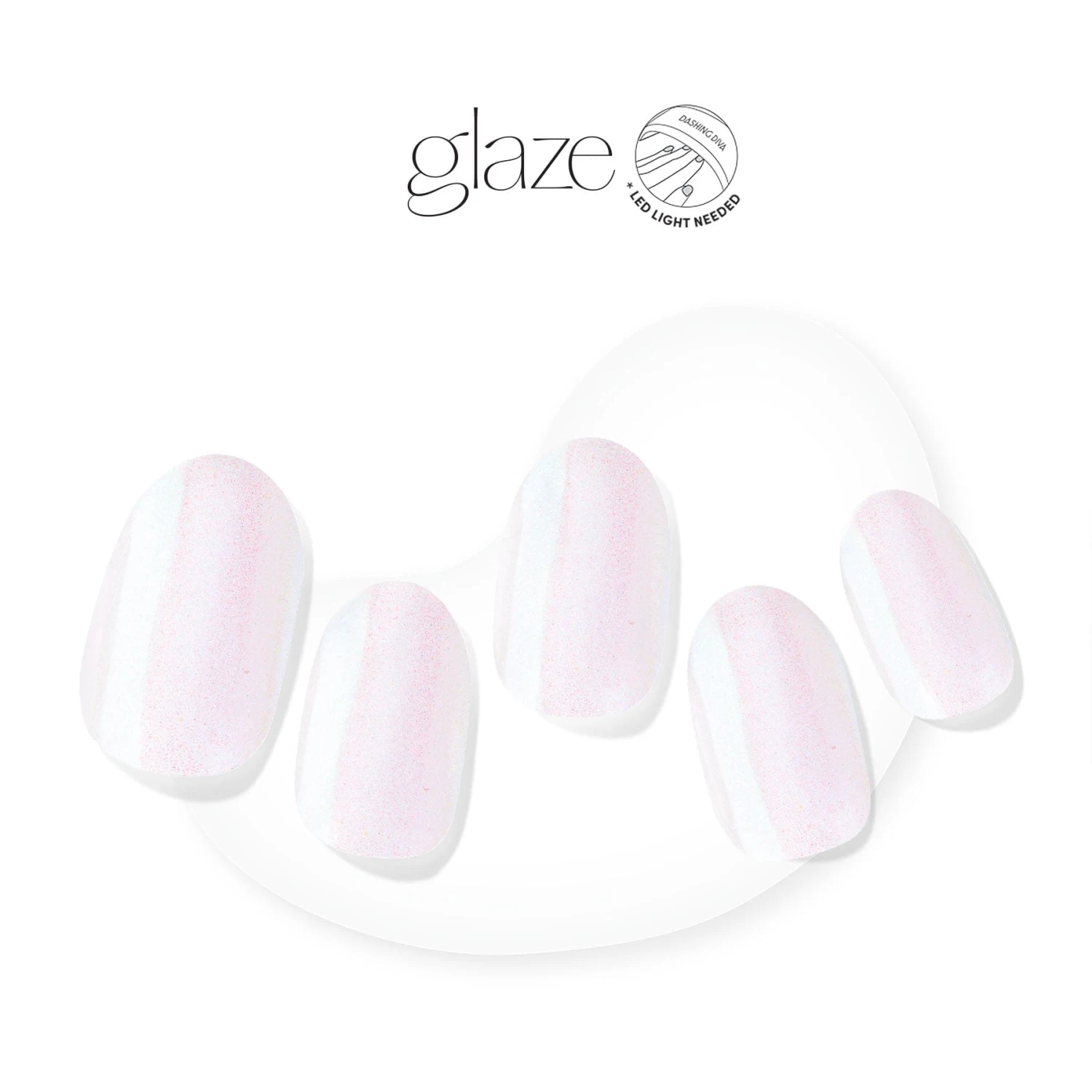 Semi-cured white pearlescent chrome gel nail strips with mega volume & maximum shine.