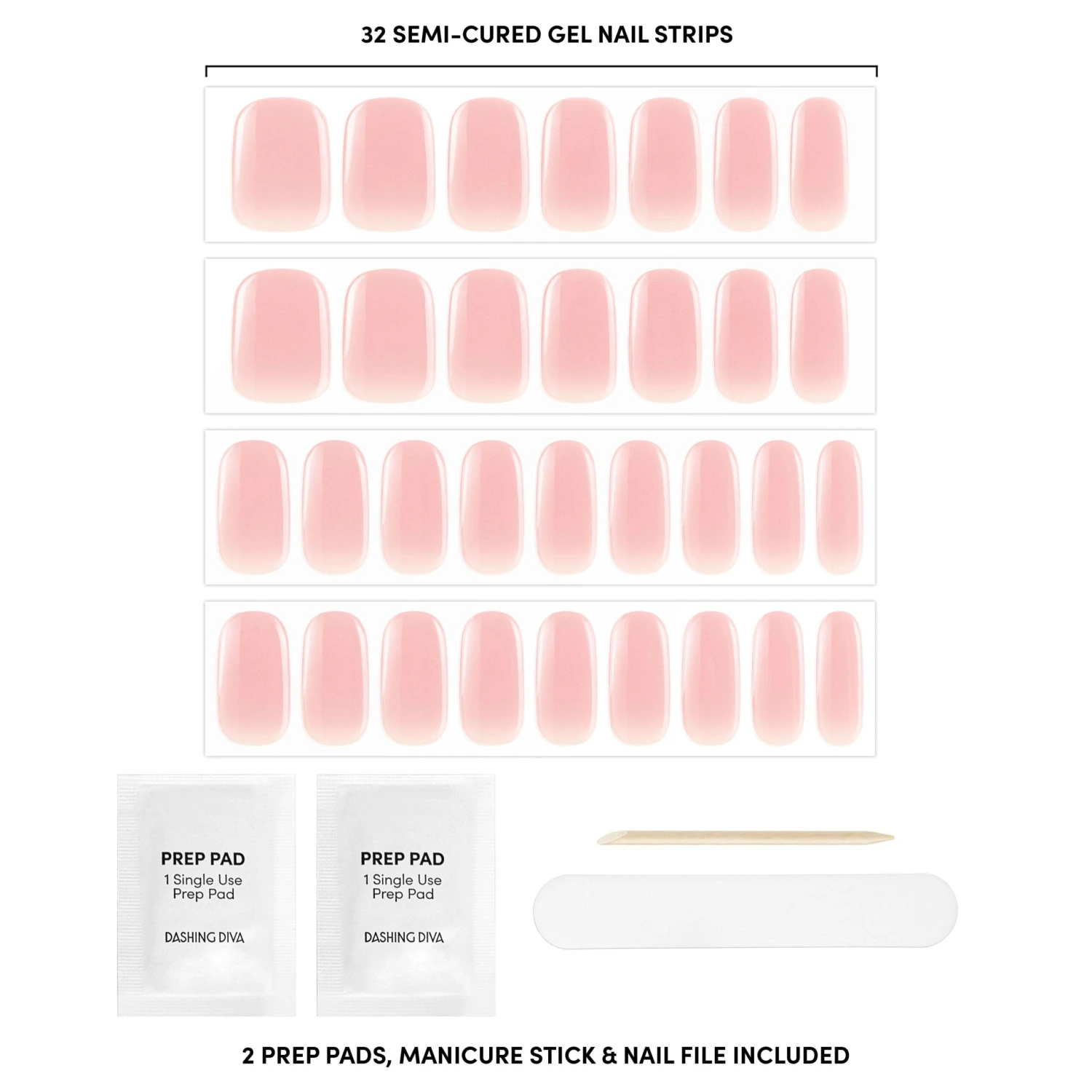 Semi-cured warm rose gel nail strips with mega volume & a sheer finish.