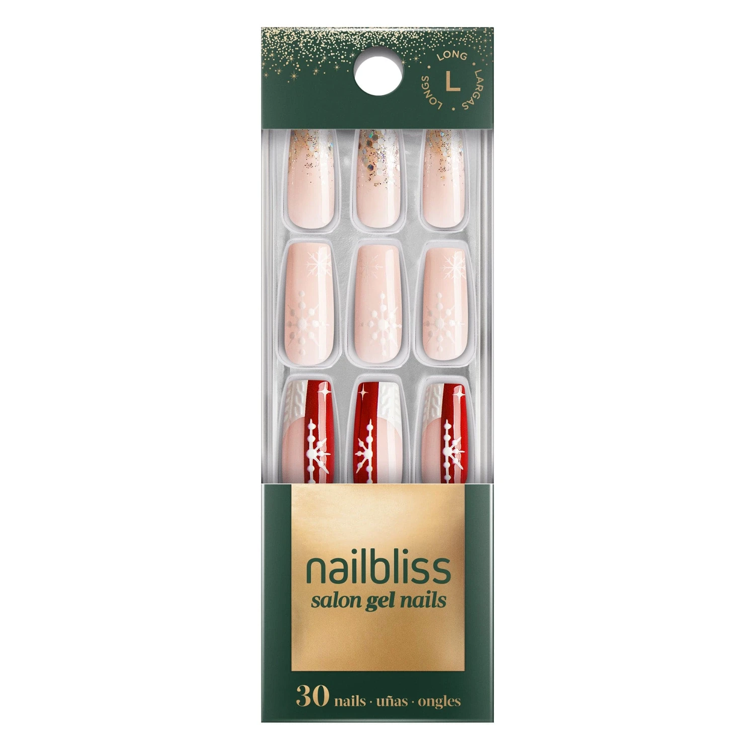 The perfect snowflake doesn’t exi- Long length, square shape, glossy finish. Sheer nude pink glue-on gel nails featuring ombré french tips with silver glitter and iridescent confetti glitter.
