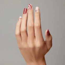 You’re one mani away from reaching nail nirvana. Sky blue gel nail strips featuring silver glitter, multicolor marbling, gold foil, and mosaic accents with a glossy, high-shine finish.