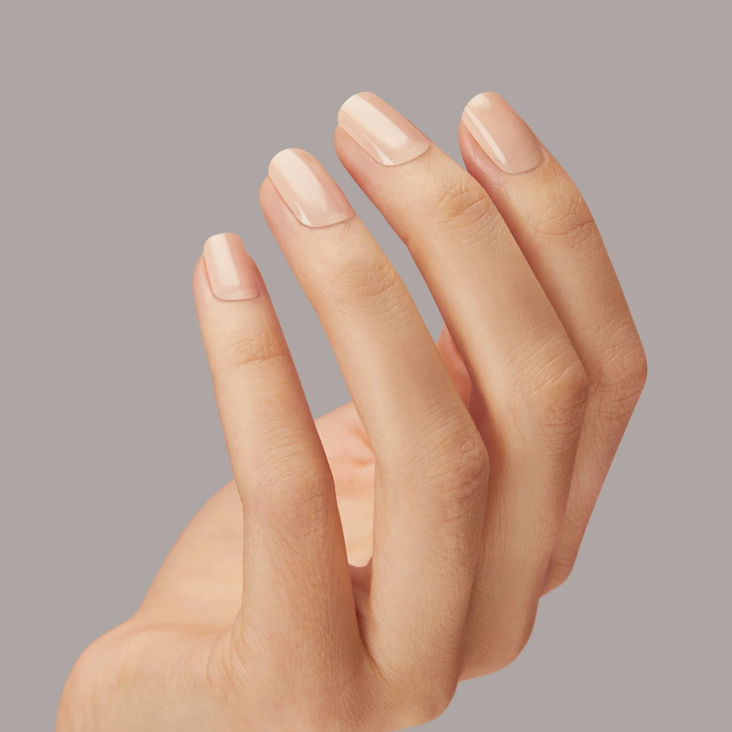 Semi-cured soft tan gel nail strips with mega volume & a sheer finish.