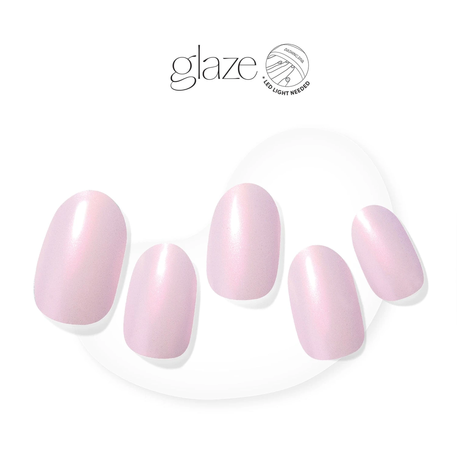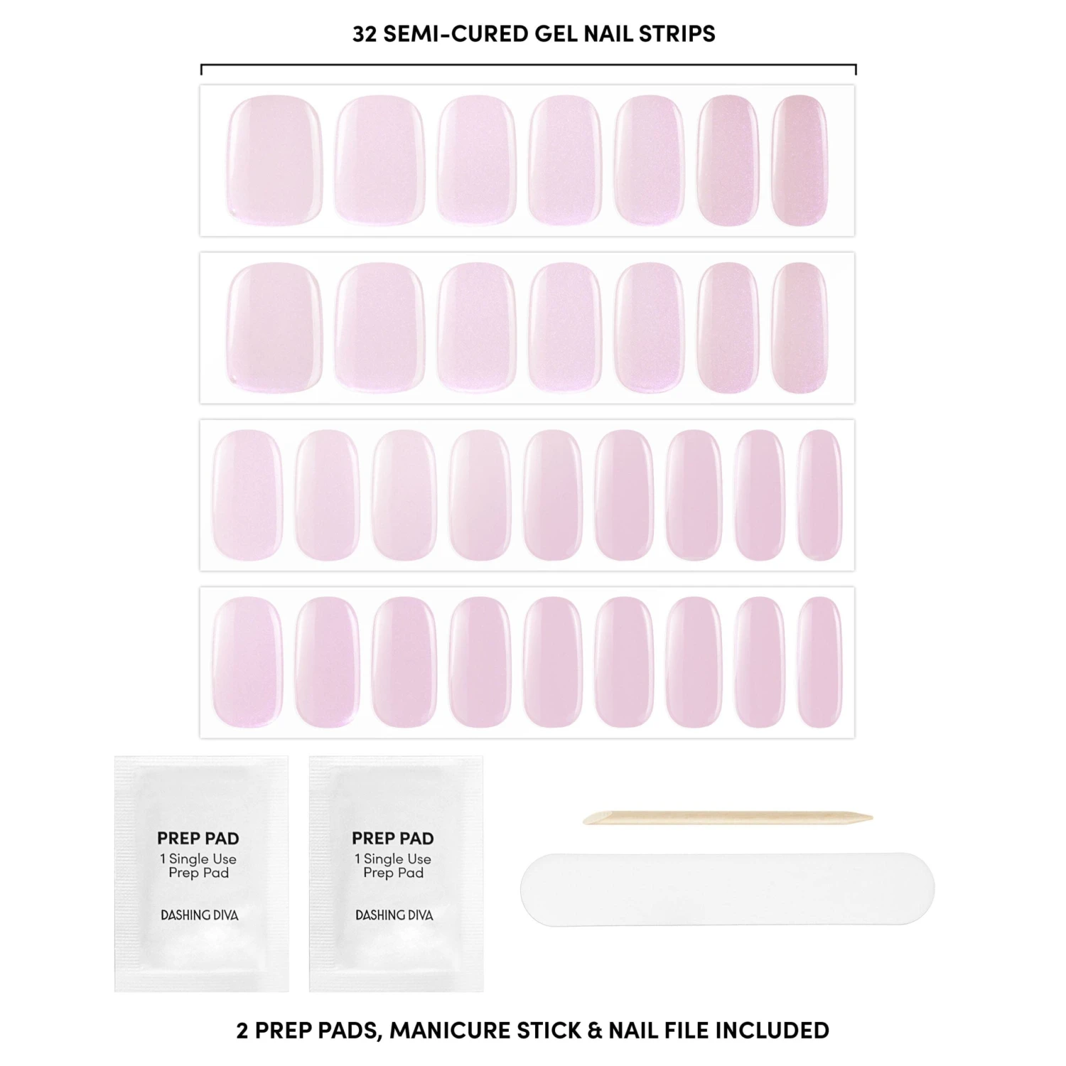 Semi-cured iridescent baby pink gel nail strips featuring a shimmery chrome finish with mega volume & maximum shine.Â