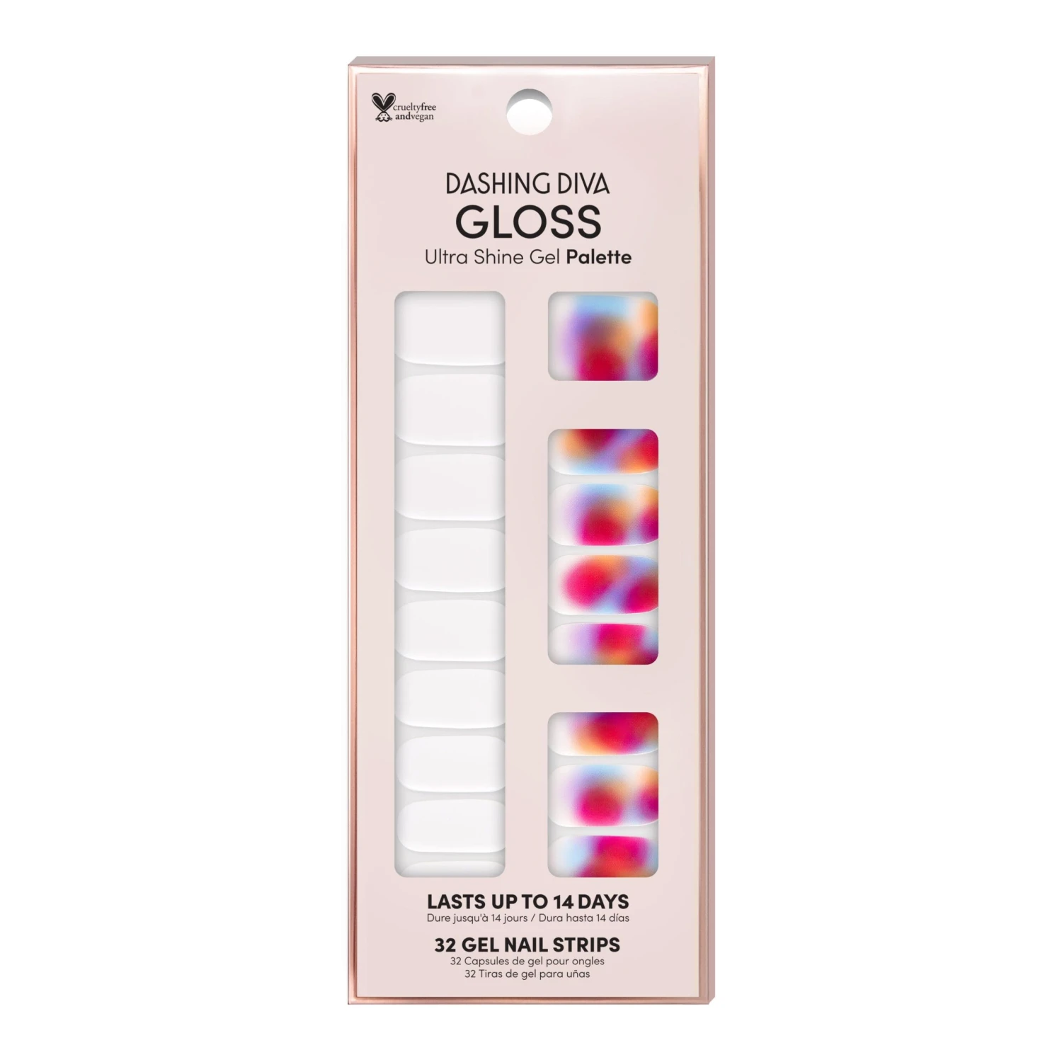 Baby pink nail strips featuring a multicolor gradient accent with a glossy, high-shine finish.