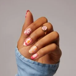 Nails that get you going from 0 gravity to 100 glam real quick. Medium length, square shape, glossy finish smoky purple press-on gel nails featuring silver glitter, gold details, and mosaic opal accents.